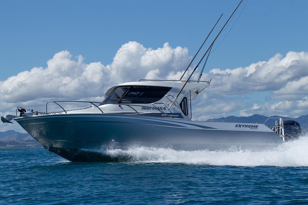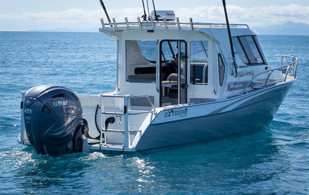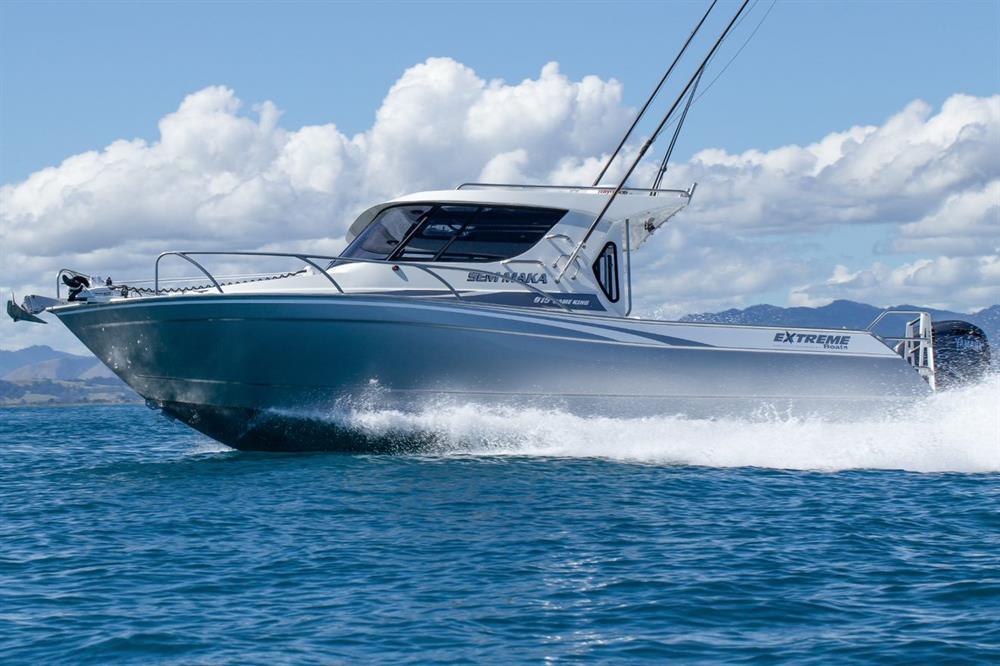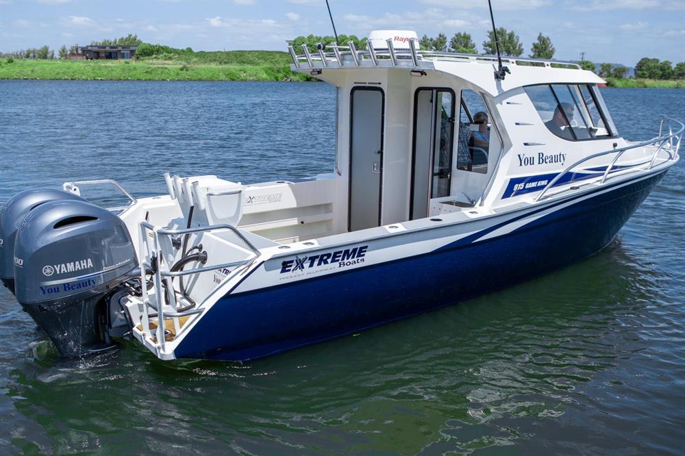 915 Game King The ultimate offshore fishing boat that performs as well as it looks stunning! Brochure Make an Enquiry Configure my Boat Boats in Stock 26' Length (7.95m) 9' Beam (2.8m) 6393lbs Tow Weight (2900kg) Max Passengers 8 400 HP Max HP Specifications Overall length 9.15MTR Beam 2.82MTR Transom and hull thickness 6mm Side and deck thickness 4mm Deadrise 20 degrees Recommended 300-450HP engine Overall length on trailer 10.80MTR Height on trailer 3.20MTR (including rod holders) Width on trailer 2.82MTR Standard towing weight 3450KG (approx) including engine and trailer Rated for 8 people Marine grade aluminium Standard Features 450 Ltr fuel tank including sender unit (maximum capacity) Aluminium bow sprit Aluminium moulded bump rail Aluminium rod holders Bait tank with window Battery switch (two way) Bilge pump with bilge grate Boarding ladder Bonnet access hatch Dash to house screen up to 16 inch Extreme graphics Flooding keel Fuel filter Full cabin squab set Fully welded underfloor construction Hatch covers Hydraulic steering kit Large Bouyancy Chambers Lined cabin Navigation lights Passenger handrail Portifino transom Radar mount Rod holders mid gunnels Self draining anchor locker Sliding windows in hardtop Trailer tie down lugs Transducer bracket Transom storage compartments (inc hatch covers) Treadplate flooring Trim tabs VHF Walkthrough transom with drop in door Wiring loom with 3 x 4 way switch panel Return to Game King